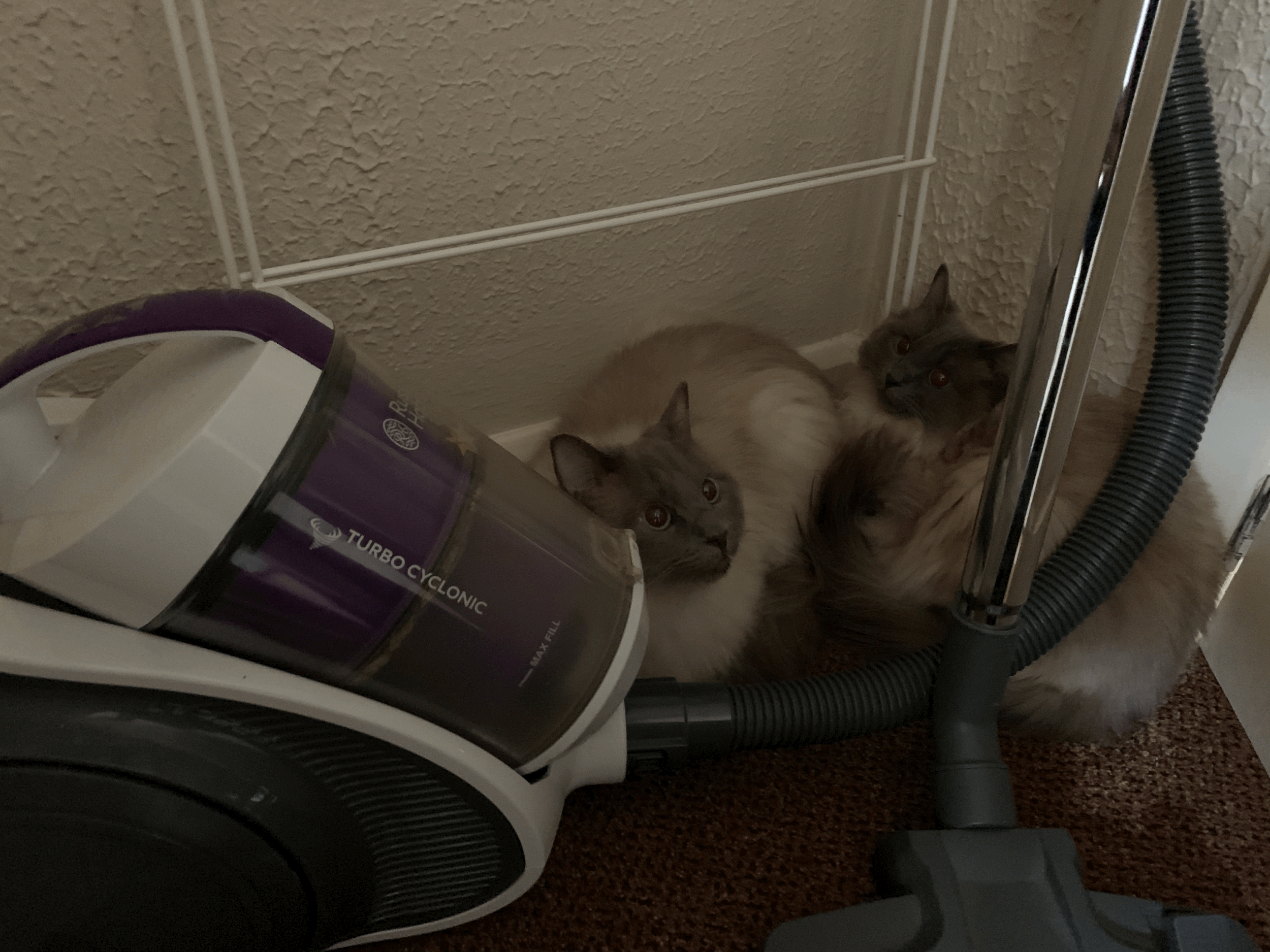 The first thing I did once we were inside was to open up the carriers. I was sure they would be raring to get out, but to my surprise they both required some encouragement. The look of bewilderment on both their faces once they emerged was pretty priceless. They had a bit of an exploration of the main room of the cottage (we’d closed all doors to the other rooms at first so as to not overwhelm them), but they soon found a hiding place in a cupboard and camped out. To their horror they had now realised that after their mammoth day out, they weren’t even going home.