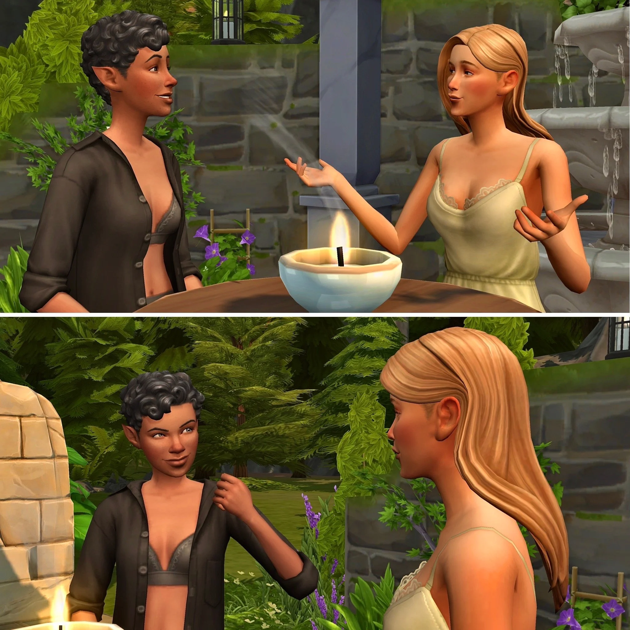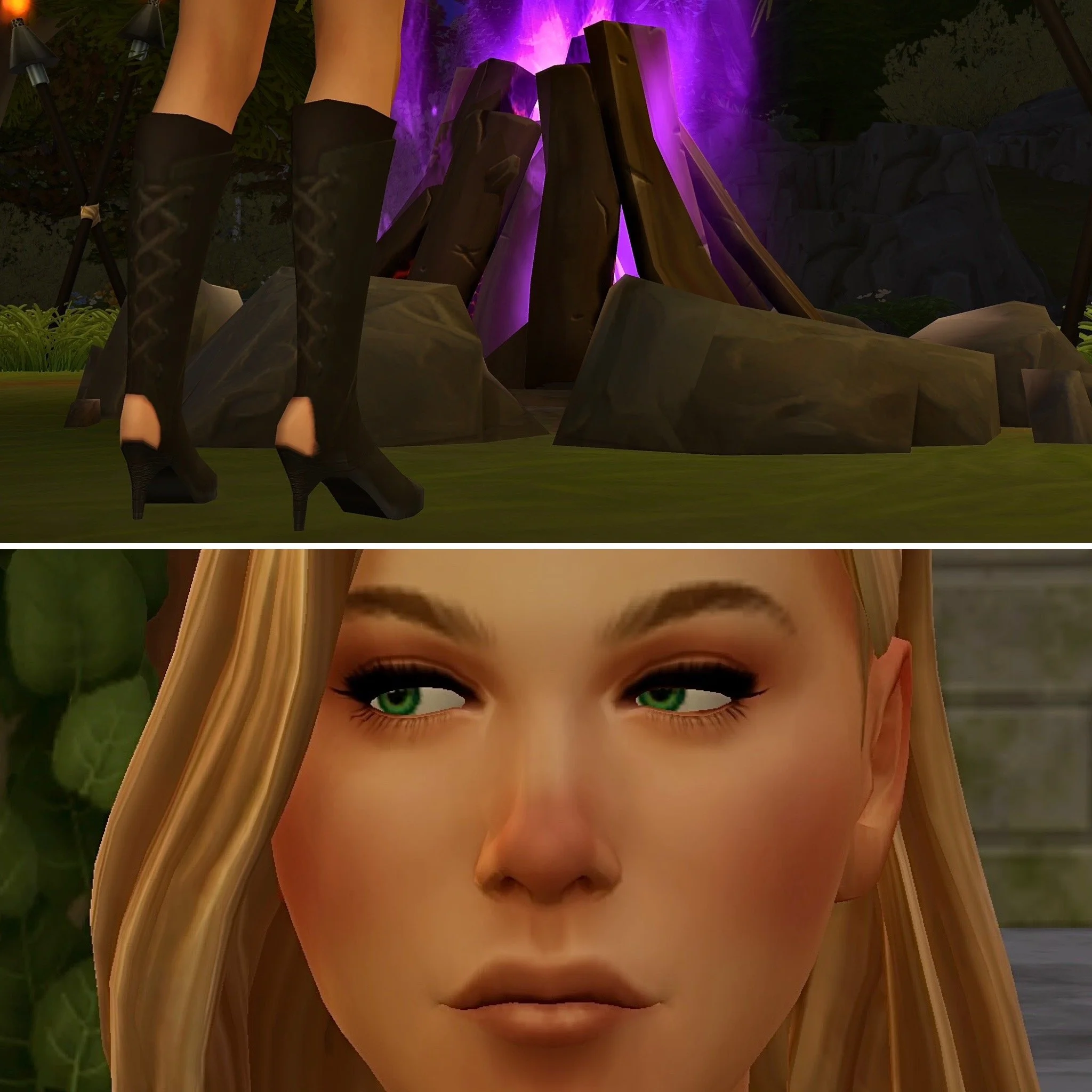They waited in silence for a short time, watching the purple flames as they danced playfully in the night’s breeze.