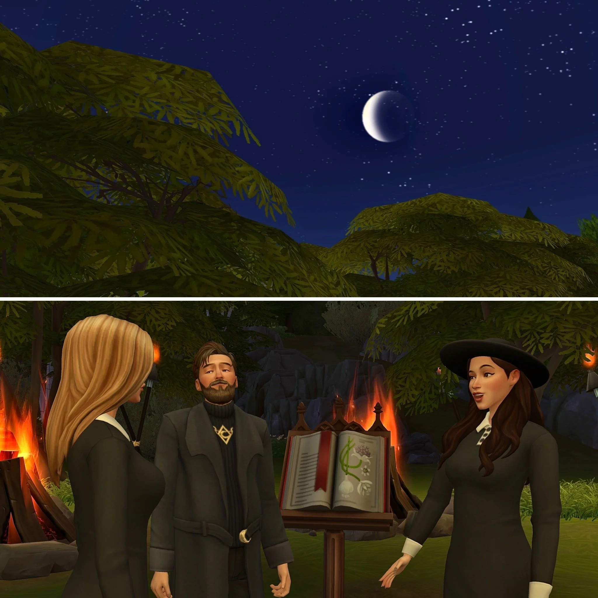 The trio stood before one of the fires lit around them, and Dolly began casting the spell she had memorised from Nancy’s old spell book.