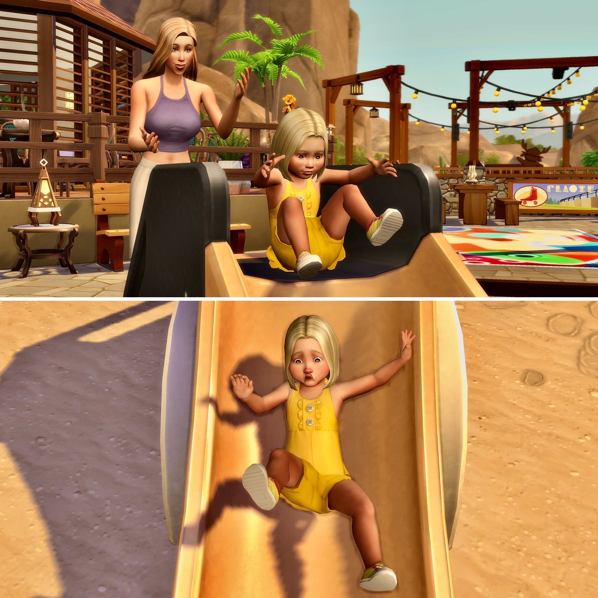 Nancy appeared super excited by all the equipment in the park, but it was the slide she wanted to go on first.