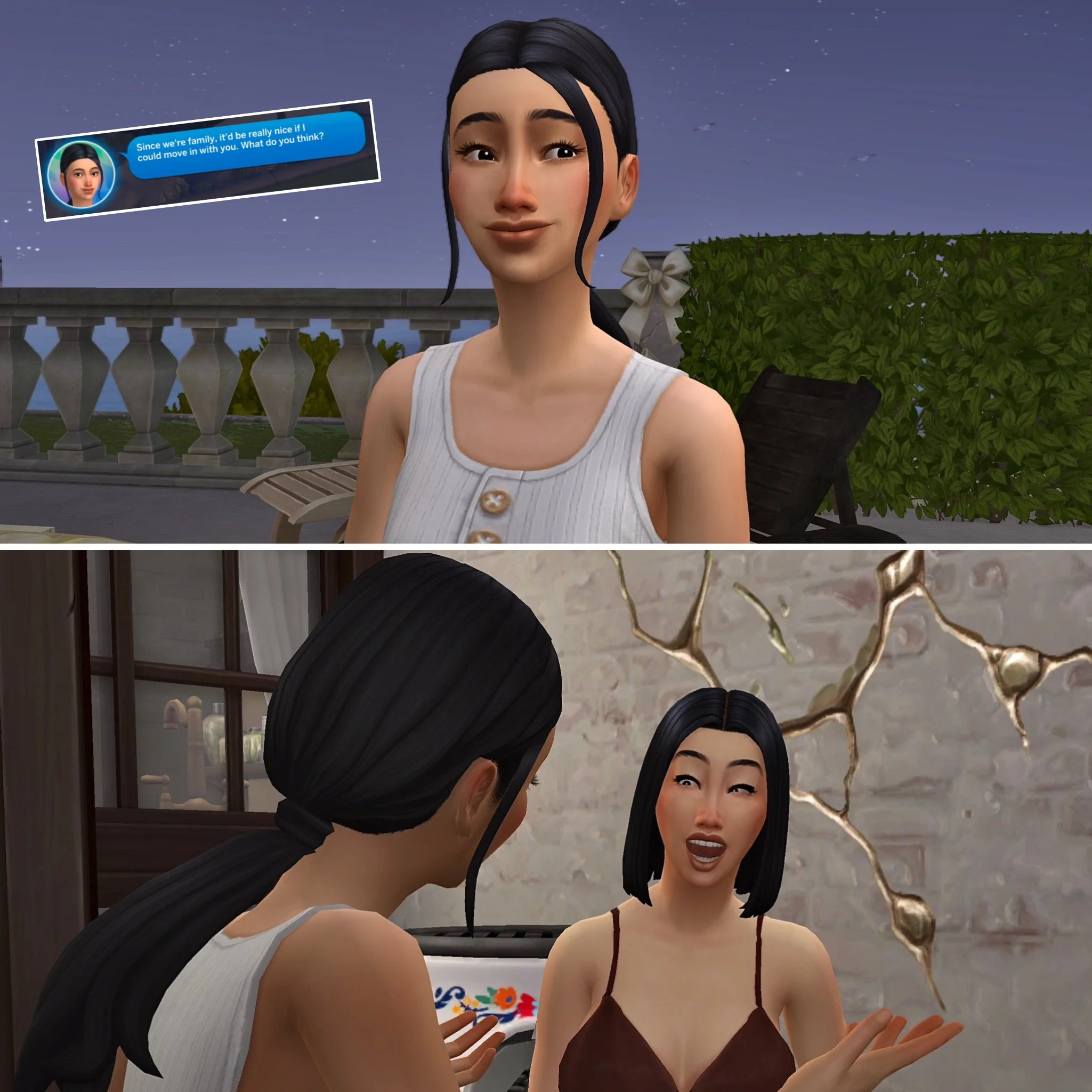 As the party came to an end, Nalani caught up with her dearest friend Greta out on the porch.