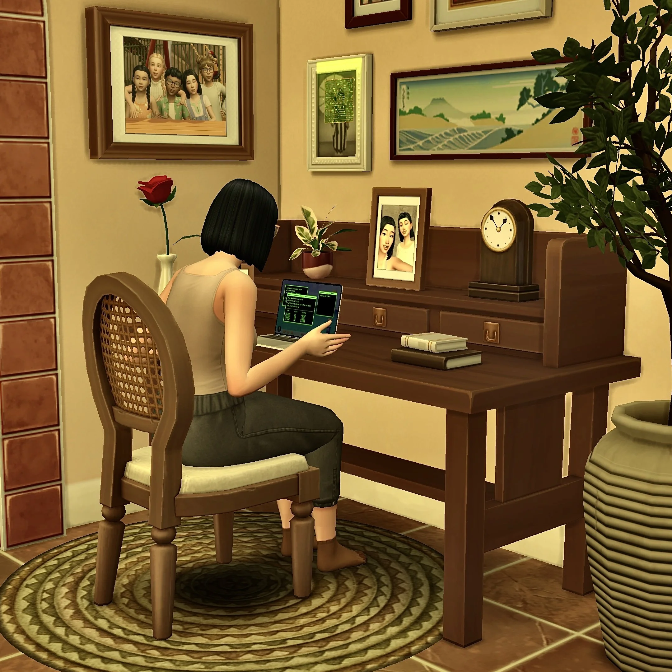 Is she plotting to destroy the Simverse, or just playing Sims Forever…?